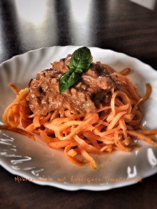 Möhren-Nudeln mit Auberginen-Tomaten-Soße